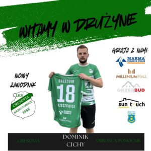Cresovia Krzeczowice, występująca w A klasie (grupa Przeworsk), pozyskała nowego zawodnika. Do zespołu dołącza dobrze znany w regionie Dominik Cichy, który ostatnio reprezentował barwy Błyskawicy Rożniatów.