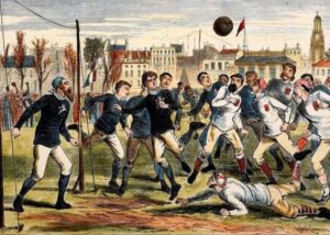 1870 – Ostatecznie zabroniono gry ręką. Wcześniej można było łapać piłkę (ale nie można jej było rzucać, ani z nią biec). Było to karane rzutem wolnym dla przeciwnika.