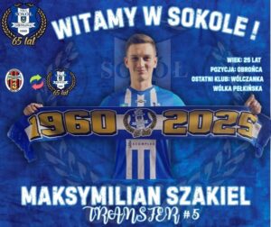 Sokół Sieniawa ogłosił piąty transfer przed startem sezonu. Do zespołu dołącza Maksymilian Szakiel – utalentowany i doświadczony zawodnik, który w poprzedniej rundzie był ważnym ogniwem Wólczanki Wólka Pełkińska występującej w jarosławskiej klasie okręgowej.