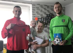 Sanoczanka Święte po raz kolejny udowodniła, że piłka nożna to nie tylko sport, ale także społeczność i wsparcie dla potrzebujących. Podczas ostatniego meczu udało się zebrać 2700 zł na leczenie Mateuszka. Dziś delegacja zarządu klubu, reprezentowana przez Prezesa Krzysztofa Gawłowskiego oraz Karola Niedźwieckiego, osobiście przekazała chłopcu zebrane środki.