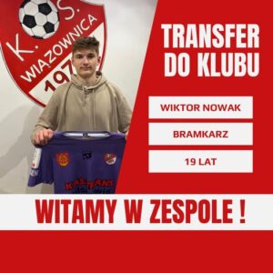 KS Wiązownica dokonała kolejnego wzmocnienia w zimowym okienku transferowym! Nowym zawodnikiem zespołu został Wiktor Nowak, 19-letni bramkarz, który dołącza do drużyny na zasadzie wypożyczenia z Hutnika Kraków.